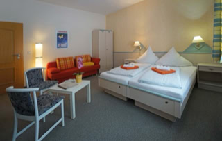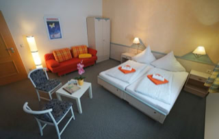 Our rooms are modern and generously set up and have TV and Internet. The quiet location guarantees a restful sleep. You can have breakfast in a nice lounge. As a special feature our guests get a rich “Bio-Breakfast-Buffet”, on request also vegan.